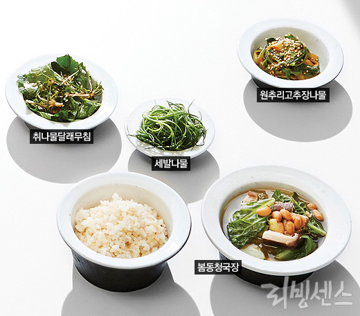 겨우내 꽁꽁 언 땅을 뚫고 솟아난 작은 새싹이 봄의 시작을 알린다. 입맛을 돋우고 영양은 풍부한 봄나물 에너지 밥상.