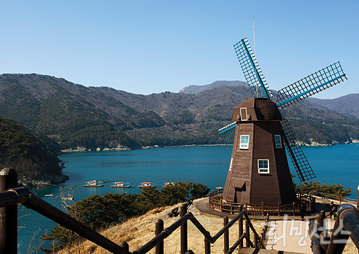 거제도의 명물 바람의 언덕과 언덕을 지키는 풍차.