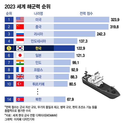 2023년 세계 해군력 순위 - 한국 5위
